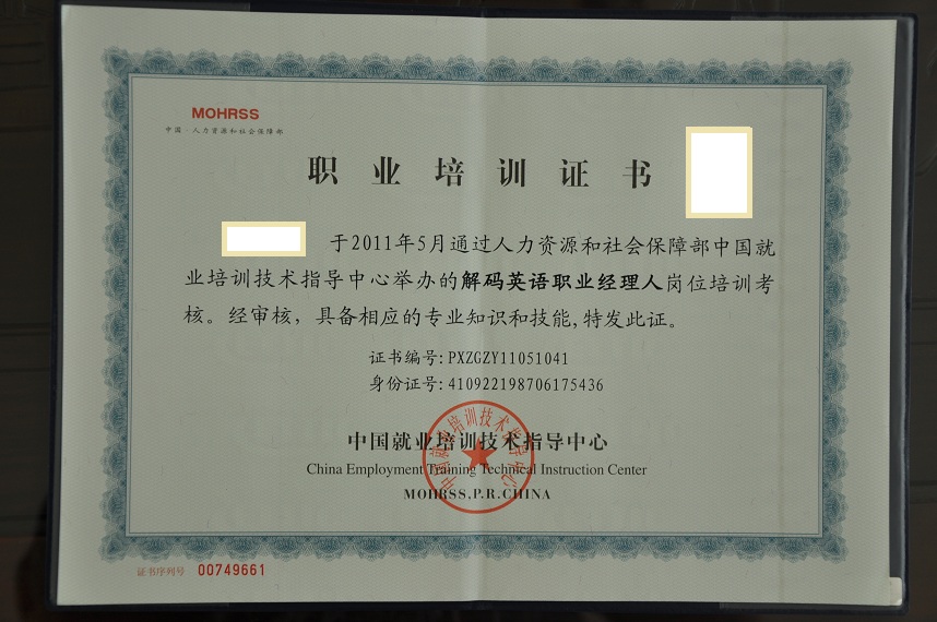 关于中华职业经理人培训工程的相关批复
